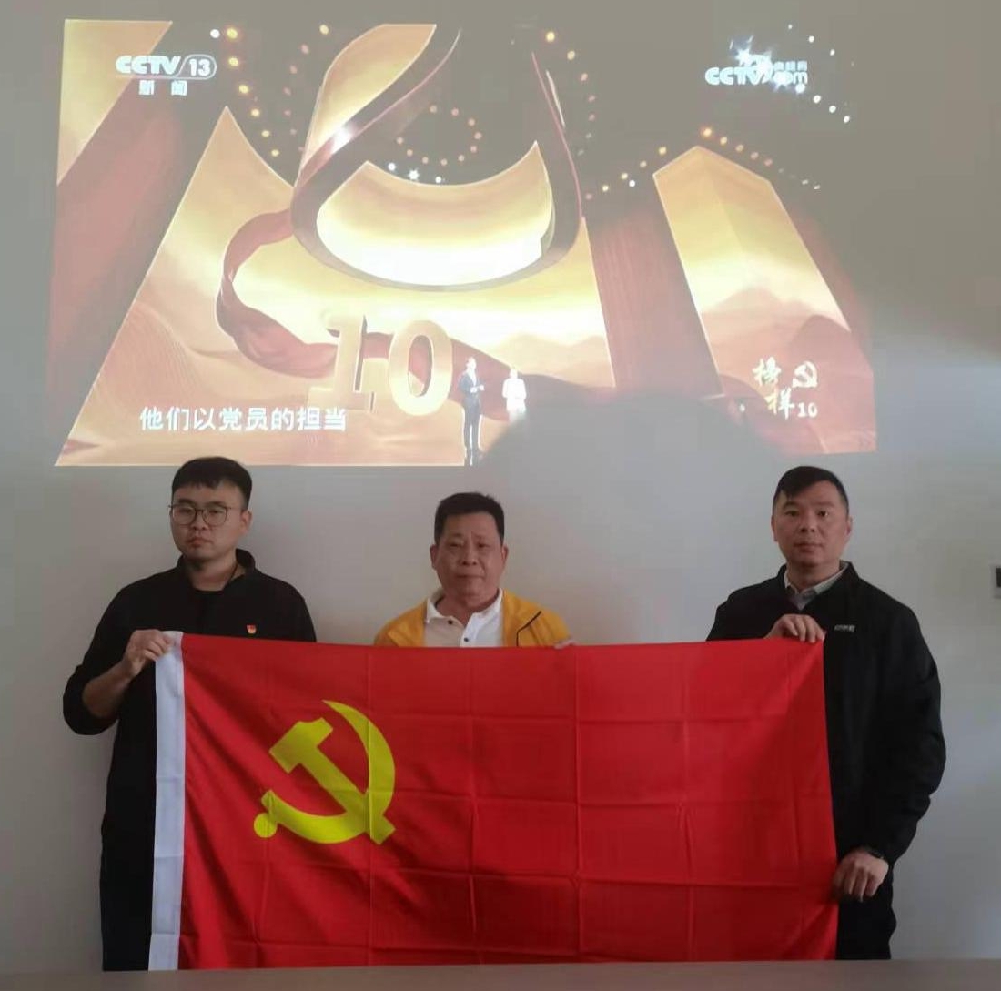 《榜样10》由中央组织部、中央广播电视总台联合制作,通过典型事迹展示、现场访谈互动、重温入党志愿书等形式,生动展现了茹振钢、梁建英、冷晓琨、田野、罗胤5名党员及两个先进基层党组织的感人事迹。观看过程中,全体党员全神贯注、认真记录。